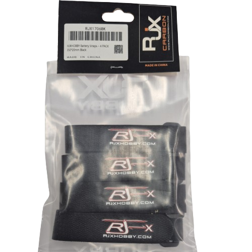 Specification: Brand: RJXHOBBY Width: 20mm Length: 350mm Net Weight: 2.5g(1pcs) Gross Weight: 17g Material: Nylon Color: Black Feature: Fits Most 3S-4S Lipo Batterys. Suitable for securing batteries and electronics. Great For Securing Batteries, Electronics, Quads, Drones, Helicopters, Planes and Cars. RJXHOBBY exclusive design specially for high speed racing. Package Included: 4 X 20x200mm Battery Straps