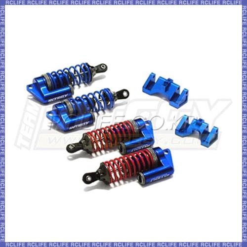 You get 4 shocks in a package (enough for one vehicle) and extras, including a pair of anodized aluminum shock mounts (replaces your stock molded shock mounts), different shock pistons, shock compression limiters, and all the necessary hardware to bolt onto your chassis using the factory mounting points The MSR6 shocks are available in blue, red, purple or silver.