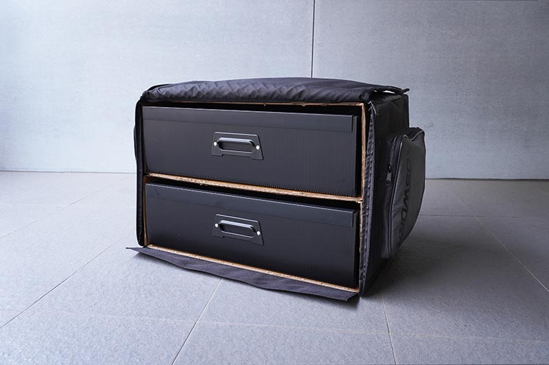Features: *Convenient compact size design *Two large drawers for 1/10 touring car, made from strong, reinforced, waterproof material *Strong cardboard box frames included (DIY tips below) *Side pockets for manual, setup sheet & other purposes *Made In Taiwan