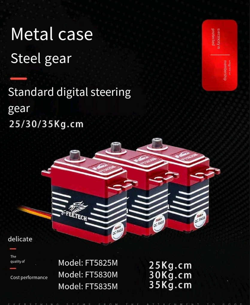 ¸í¼¼: ºê·£µå: FEETECH ¸ðµ¨: FT5835M ÀúÀå ¿Âµµ ¹üÀ§: -30 ¡É ~ 80 ¡É ÀÛµ¿ ¿Âµµ ¹üÀ§: -20 ¡É ~ 60 ¡É ÀåÄ¡ À¯Çü: ½ºÆ¿ ÇÑ°è °¢: ÇÑ°è ¾øÀ½ º£¾î¸µ: º¼ º£¾î¸µ °æÀû ±â¾î ½ºÇöóÀÎ: 25T/5.9mm ÄÉÀ̽º: PA + ¾Ë·ç¹Ì´½ Ä¿³ØÅÍ ¿ÍÀ̾î: 30CM ¸ðÅÍ: ÄÚ¾î ¸ðÅÍ ÀÛµ¿ Àü¾Ð ¹üÀ§: 6-7.4V °øÀü ÇöÀç (atstopped): 6MA@7.4V Áü ¼Óµµ ¾øÀ½: 0.2sec/60 ¡Æ @ 7.4V Runnig ÇöÀç (Áü ¾øÀÌ): 250mA@7.4V ÇÇÅ© ½ºÅç ÅäÅ©: 35kg.cm@7.4V Á¤°Ý ÅäÅ©: 10.16kg.cm@7.4V ½ºÅç Àü·ù: 3.5A@7.4V ¸í·É ½ÅÈ£: ¸Æ¹Ú Æø ¼öÁ¤ ÁõÆø±â À¯Çü: µðÁöÅÐ ºñ±³±â ¸Æ¹Ú Æø ¹üÀ§: 500 ~ 2500 sec sec Á¤Áö À§Ä¡: 1500 ¥ì sec ½ÇÇà ÇÐÀ§: 180 ¡Æ (500 ¡æ 2500 ¥ìsec¿¡) Á×Àº ¹êµå ³Êºñ: ¡Â 4 ¥ì sec ȸÀü ¹æÇâ: 1500 ¡æ 2000 ¥ìsec ÆÐŰÁö Æ÷ÇÔ: 1 * FT5830M ¼º¸ 1 * ±Ý¼Ó ±×³× ÆÈ 5 * ÇÃ¶ó½ºÆ½ ±×³× ÆÈ 4 * °í¹« ÆÐµå 4 * Ȳµ¿ °í¹« ½½¸®ºê °¡½ºÄÏ 6 * M3 ³ª»ç 4 * M2 ³ª»ç ³ëÆ®: ![]()