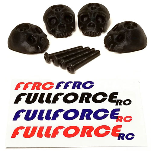 Each pack contains four custom 3D printed skulls. These are printed in house with 35% infill from ABS filament. Comes complete with new longer hardware.