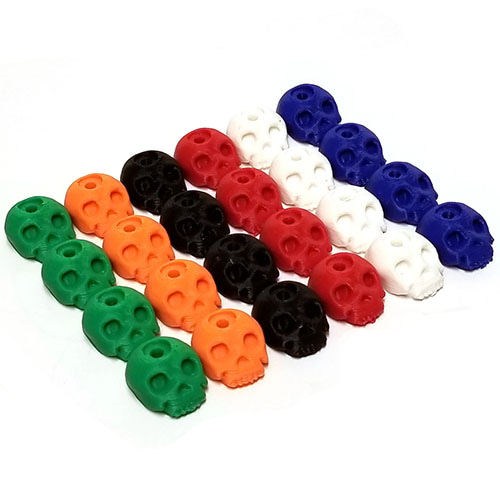 Each pack contains four custom 3D printed skulls. These are printed in house with 35% infill from ABS filament. Comes complete with new longer hardware.