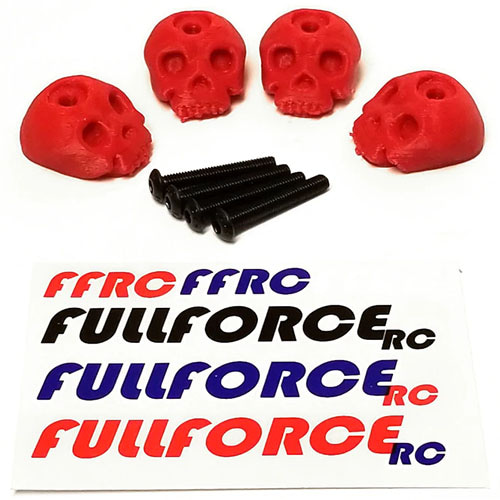 Each pack contains four custom 3D printed skulls. These are printed in house with 35% infill from ABS filament. Comes complete with new longer hardware.