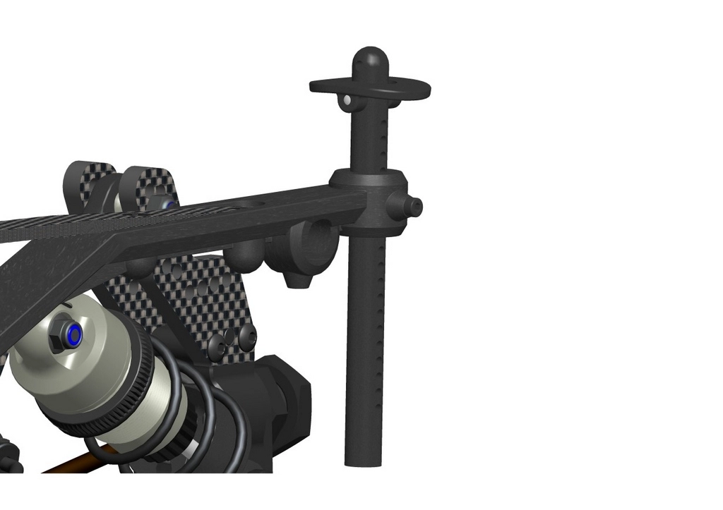 The Gt also comes with fully adjustable front and rear body mounts, and platforms. The platforms are oversized to make sure the body had plenty to rest on and held in place with a sold metal pin. The posts themselves are extra-long so that they can be cut to length depending on what body you prefer. The posts themselves have many holes in them to select the height you need and are locked into position by way of a 10mm cap head screw. This locking will prevent the body from adjusting in a collision or crash.