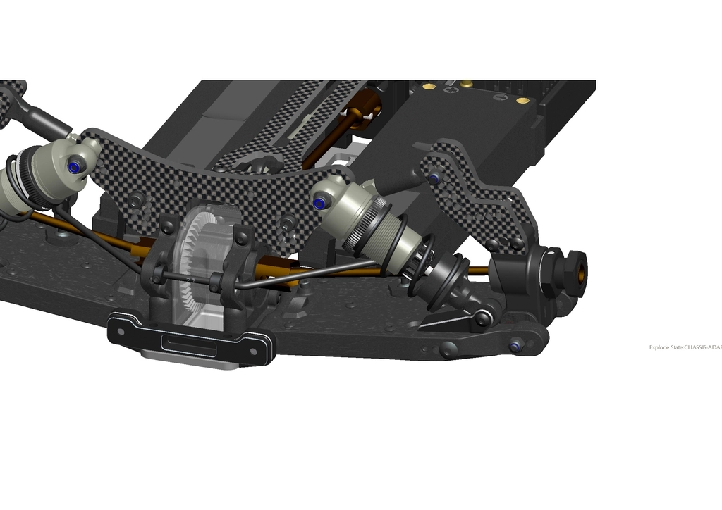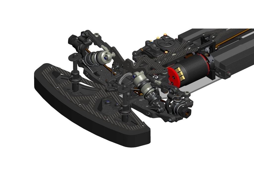 We will additionally provide an optional carbon chassis with distinct flex characteristics, which can enhance performance on specific tracks. And will save 61 grams on the aluminum chassis (adaptor included).