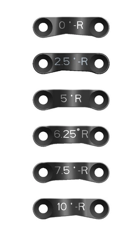 In upgrading the caster block, we also have to do an upgrade on the steering block in order to make our dream a reality. Although there is not a ton here new, the steering blocks retains the Delrin bushing to rotate on the new pivot balls designed for the adjustable caster block. These bushings are larger in diameter to give maximum support on the spindle and reduce the amount of play in the spindle assembly. The steering block will still incorporate all the original Ackerman arms, so you won¡¯t need to buy any extra or new ones there as your old ones carry over. You can still use your 0,1,2,3, and 4 Ackerman arms to fine tune your steering geometry to suit your needs or any track condition.
