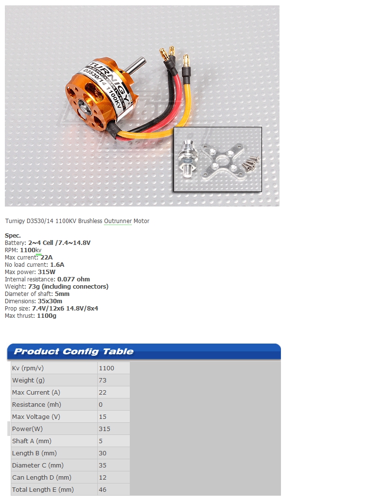 D3530-141100 Turnigy D3530/14 1100KV Brushless Outrunner Motor