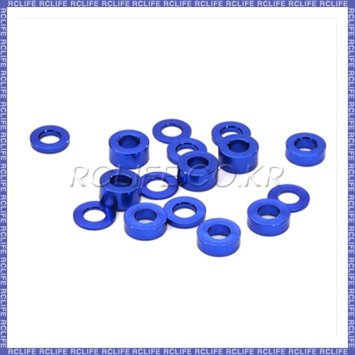 Billet Machined 16pcs Aluminum M3x6 Washer Spacer (0.5, 1.0, 2.0, 3.0mm) (Blue)
