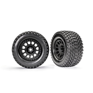 AX7872 Tires and wheels,assembled,glued-XRT Race black wheels,Gravix tires,foam inserts-left,right