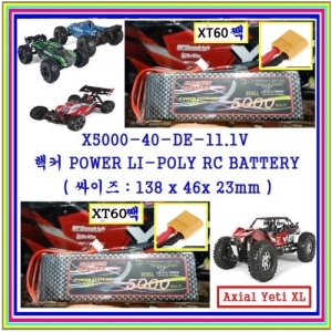 [ ¡Ú µ¿¿µ»óº¸±â^^ 3¼¿11.1V + XT60± ÃÑ2°³ ¡Ú ] X5000-40-XT60-11.1V ÇÙÄ¿ POWER LI-POLY RC BATTERY ( ½ÎÀÌÁî : 138 x 46x 23mm ) => Ãʰ·Â + Ç®ÆÄ¿ö¹åµ¥¸® !!